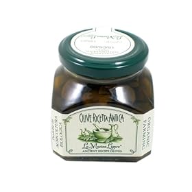 These olives are "Taggiasche", a quality typically Ligurian, from the Western Riviera. Plants that give this type of olive are century year old and were planted by the monks on the terraces overlooking the sea. The flavour is delicious thanks to an excellent mix between the intense and aromatic taste of the olives and the particular sweetness and delicacy of the currants and the pine nuts.