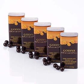 New Godiva Chocoiste Dark Mandarin Orange Chocolate Pearls are little confections of chocolate perfection. Godiva Chocoiste Pearls are packaged in take-me-with-you tins so that you never have to leave your Godiva far behind.Take yours everywhere, but be prepared to share. 5 tins. (1.5 oz. each) Kosher OU-D.